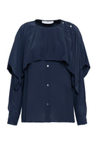 The ENNA SHIRT features a classic button-up design paired with a versatile removable cape, allowing you to effortlessly switch between polished and statement looks. Crafted for comfort and style, this blouse adapts to your mood and occasion, making it a supportive addition to your wardrobe.
