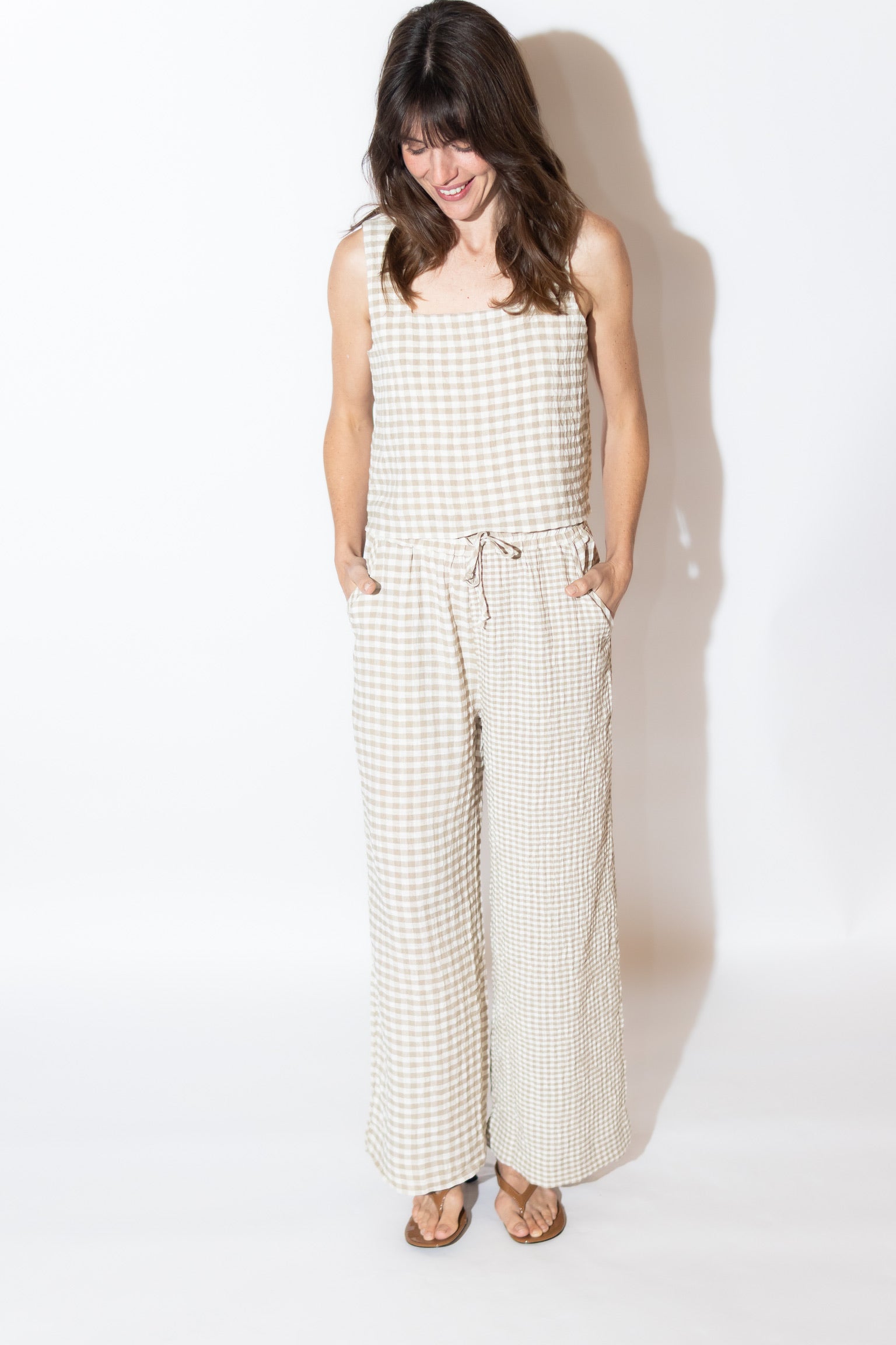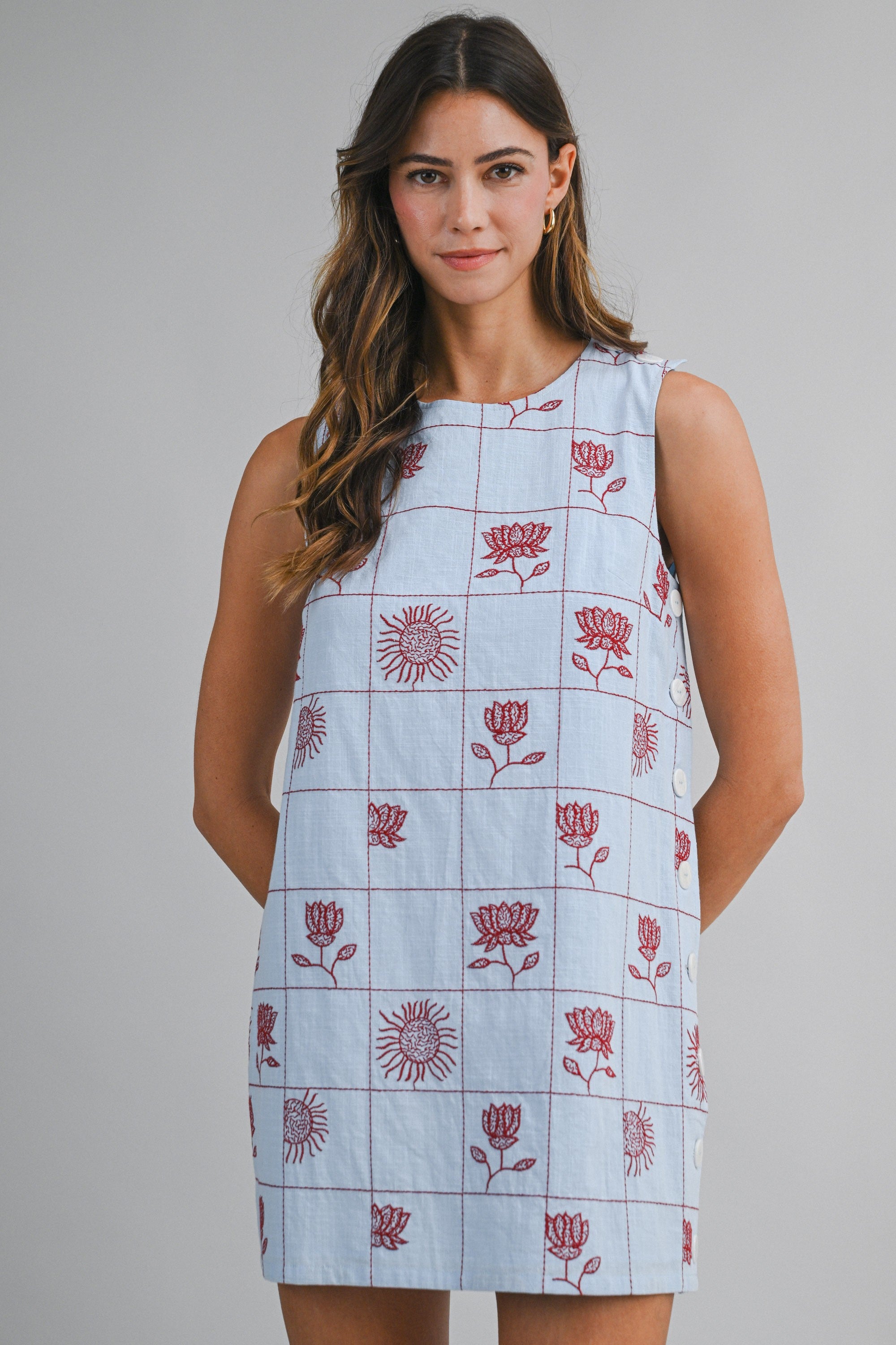 GRID EMBROIDERED SLEEVELESS MINI DRESS
