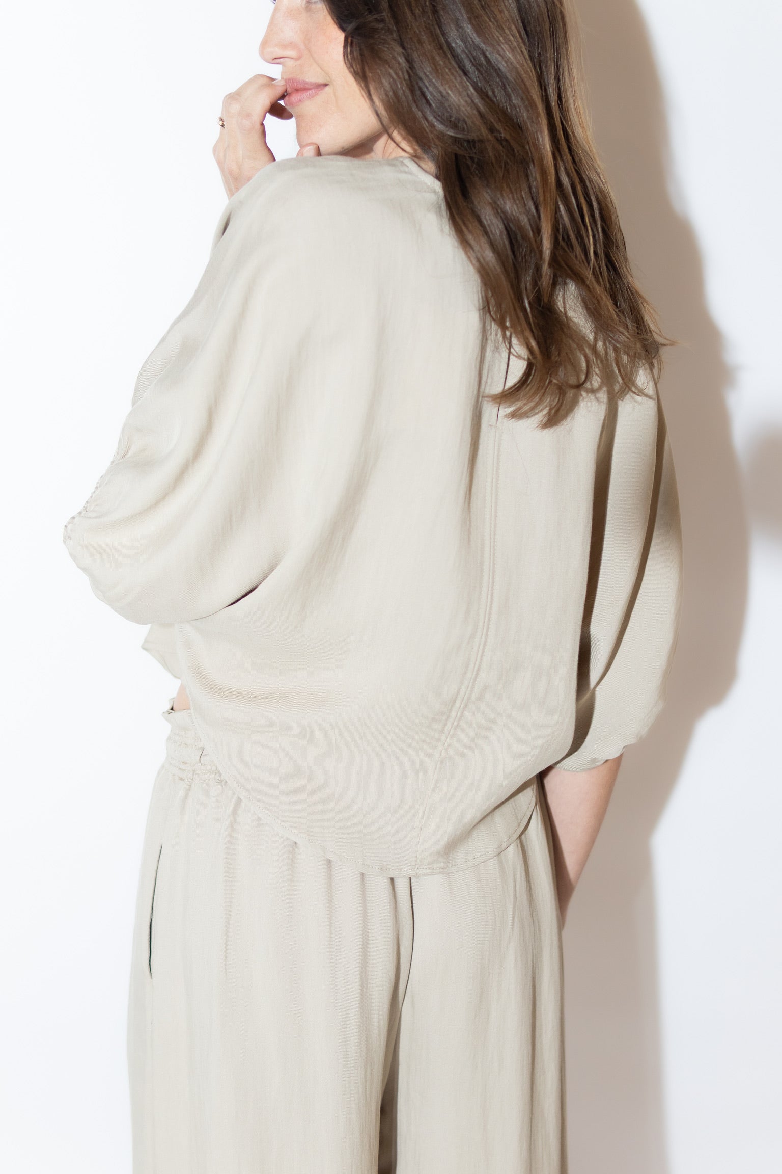 SATIN BUTTON UP SHIRT WITH BANDANA PRINT
