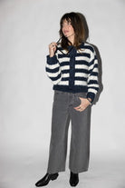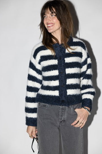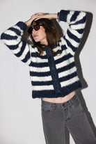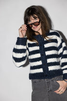 Elevate your everyday wardrobe with this sophisticated boucle effect sweater cardigan. Crafted in a timeless navy and white colorway, it features a classic front button closure for effortless layering. The textured boucle fabric adds visual interest and dimension, making it perfect for pairing with your favorite basics or dresses. Whether you're heading to the office or enjoying a casual weekend, this versatile piece brings both comfort and polish to any outfit.