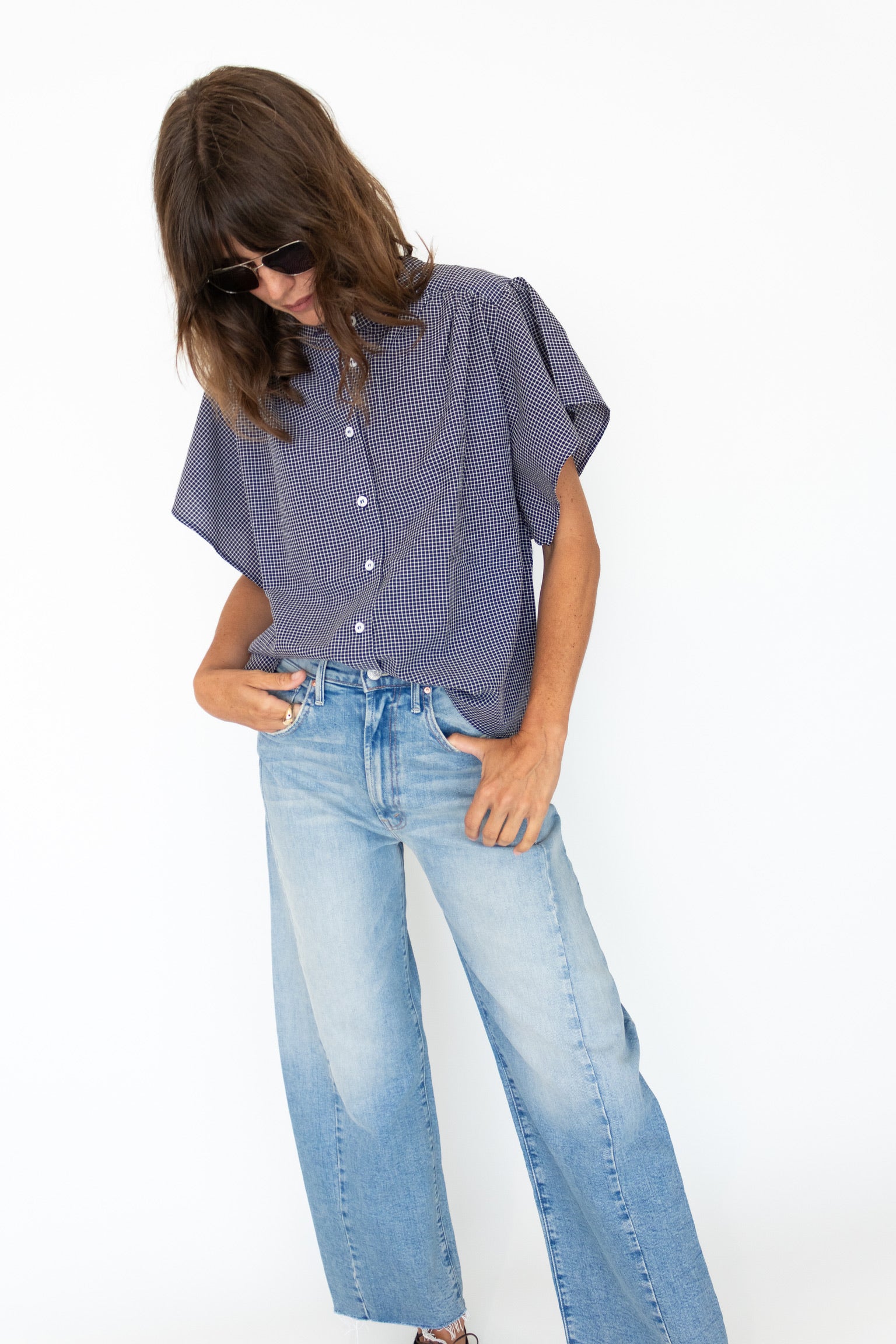 This cotton gingham blouse combines classic charm with fresh updates for everyday wear. Featuring soft flutter sleeves, it adds a gentle, feminine touch while offering breathable comfort. Perfect for layering or wearing on its own, this top brings relaxed style with thoughtful details you’ll appreciate throughout your day.