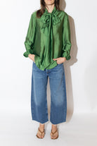 Elevate your everyday wardrobe with this metallic ribbon tie neck blouse. The versatile design transitions seamlessly from day to night—wear it loose for an effortless, relaxed silhouette or tuck it into your favorite pants for a polished, put-together look. The distinctive tie neck detail adds a touch of sophistication and movement, while the subtle metallic finish catches the light beautifully. Perfect for layering or wearing solo, this piece works as hard as you do.