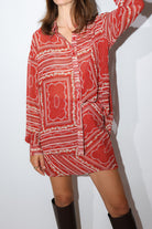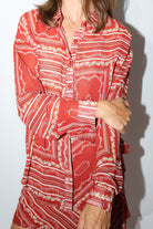 This semi-sheer paisley print button-up offers a stylish, lightweight layer perfect for versatile styling. Pair it with the matching skirt for a coordinated look or tuck it into denim and boots for effortless everyday wear. Its breathable fabric ensures comfort while adding a touch of elegance to your outfit.