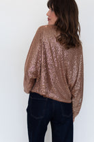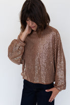 This sequin blouse brings effortless sparkle to your wardrobe and easily transitions from day to night. Pair it with tailored pants and a bubble sleeve jacket for a chic daytime look, then switch to statement accessories and heels to elevate your outfit for evening events. Its versatile style makes it a perfect choice to shine anytime.