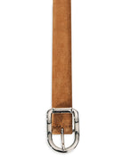 Crafted of suede, the Mija belt from Déhanche features a sleek silhouette with a silvertone and goldtone buckle.