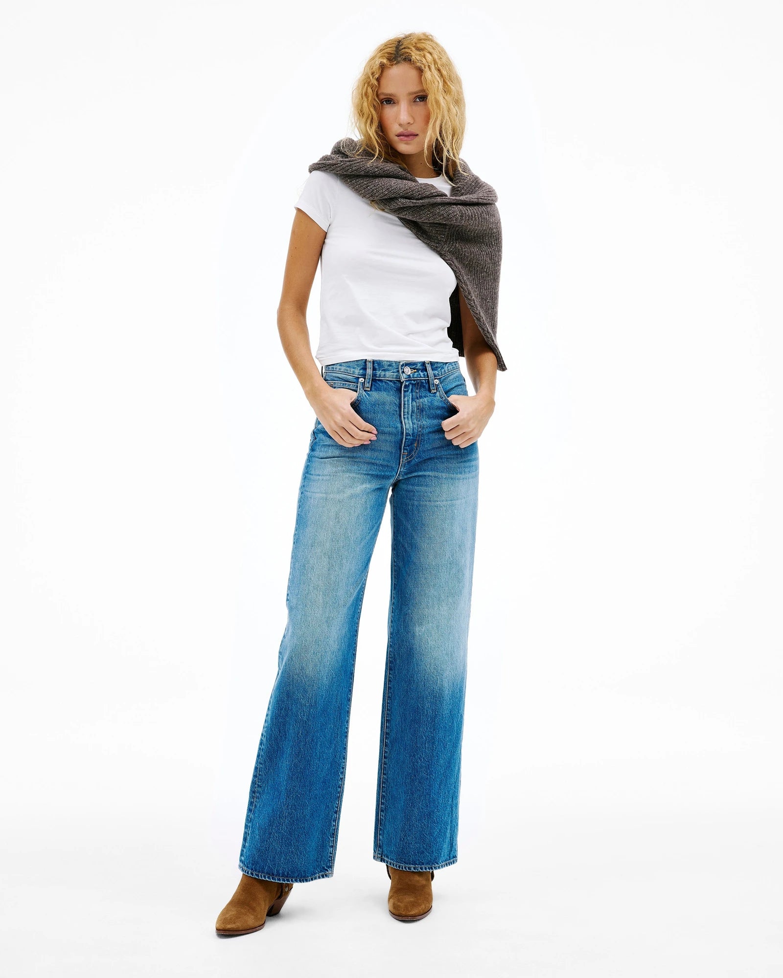 Grace is a signature style designed to elongate the leg with a high-rise waist and a playful wide-leg silhouette.