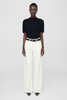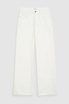 A relaxed, '90s-inspired jean constructed from a midweight rigid organic-cotton blend without stretch in a light ivory wash. The Hugh Jean features a wide, long leg and raw-edge hem.