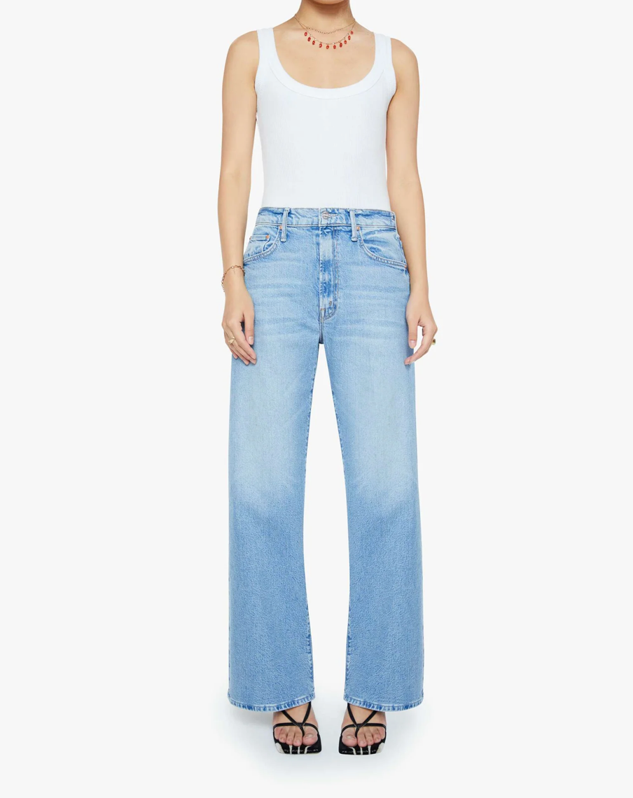 Wide-leg jeans with a super high rise and a 30-inch inseam with a clean hem. Made from semi-rigid SUPERIOR denim, Sow Surreal is a light blue with whiskering and fading throughout for a lived-in look.