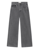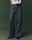 The Slouch Wide Leg Jean sits low on the hips with a long inseam and a wide, easy leg. Classic five-pocket construction includes scoop pockets, back patch pockets, a metal shank button, zip fly, and metal rivets. Designed to feel lived-in from the first wear.