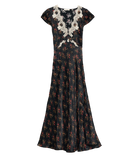 Cut from soft crepe-back satin in our Fleur du Palais print, the ‘30s-inspired Coraline Dress features gathered cap sleeves and a plunging V-neckline adorned with contrast lace. A fitted bodice with an invisible side zipper and adjustable back waist tie gives way to a bias-cut midi skirt.