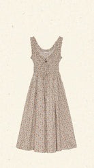 Crafted from a soft, organic cotton lawn adorned with our antique-inspired Jardin du Château print, our Emmaretta Dress features a scoop neckline with an adjustable tie, a gathered bust, and wide straps trimmed with petite ruffles. A smocked bodice—finished with a second adjustable tie—gives way to a full, ankle-grazing skirt.