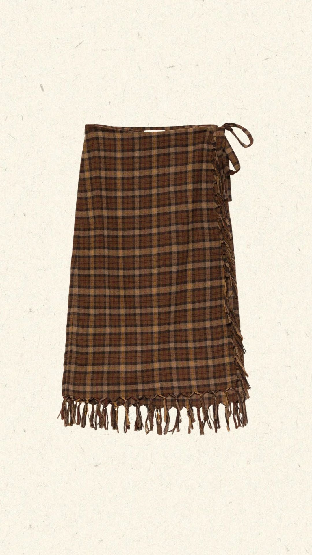 A DÔEN Heirloom keepsake, the Saskia Skirt is crafted from a softly structured wool blend in our seasonal Cornwall Plaid. This high-waisted wrap style nods to silhouettes of the 1970s, finished with hand-knotted fringe at the midi-length hem and waist ties for the perfect fit.