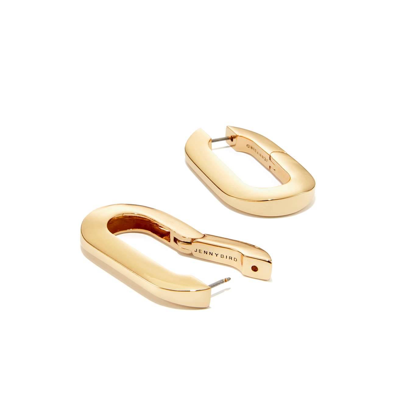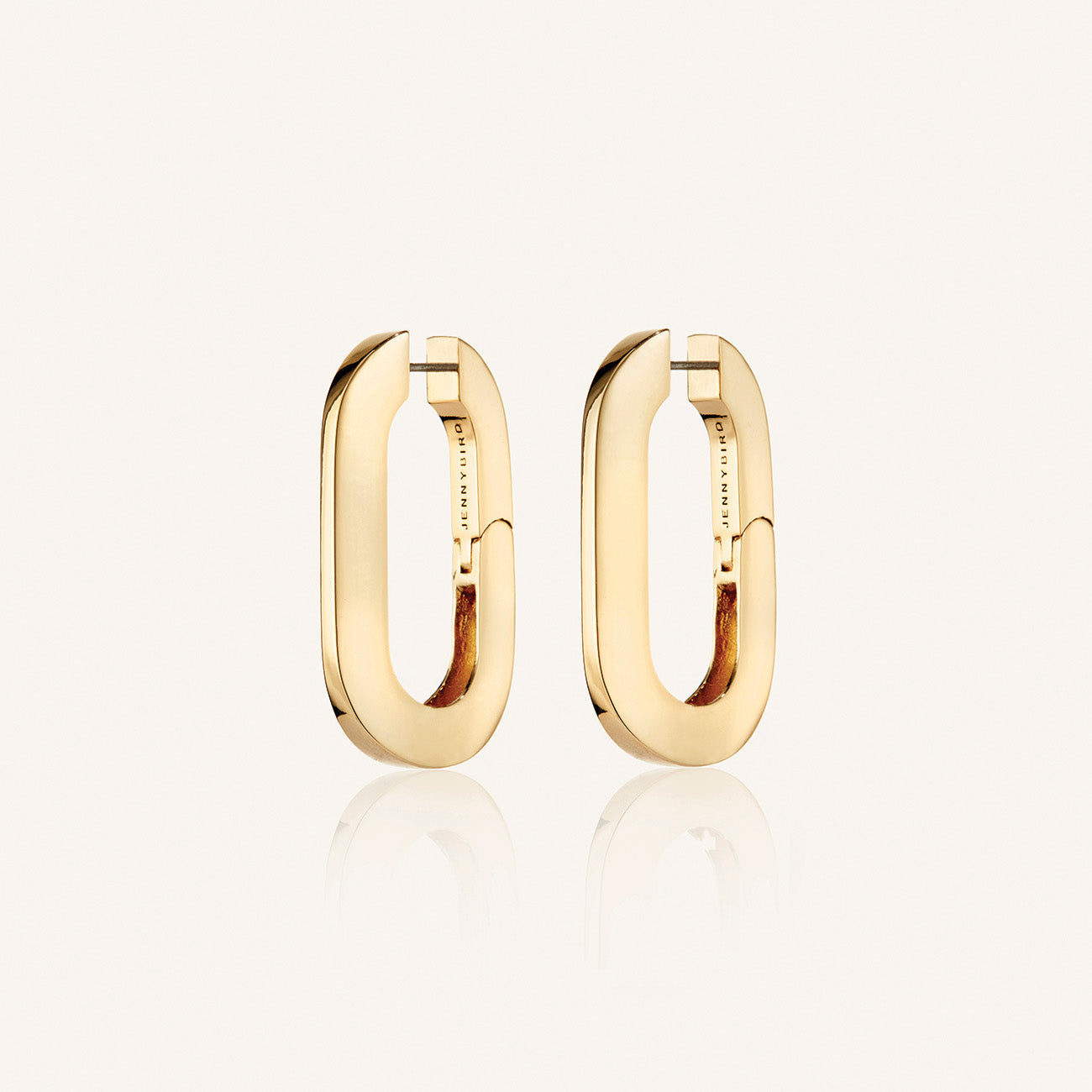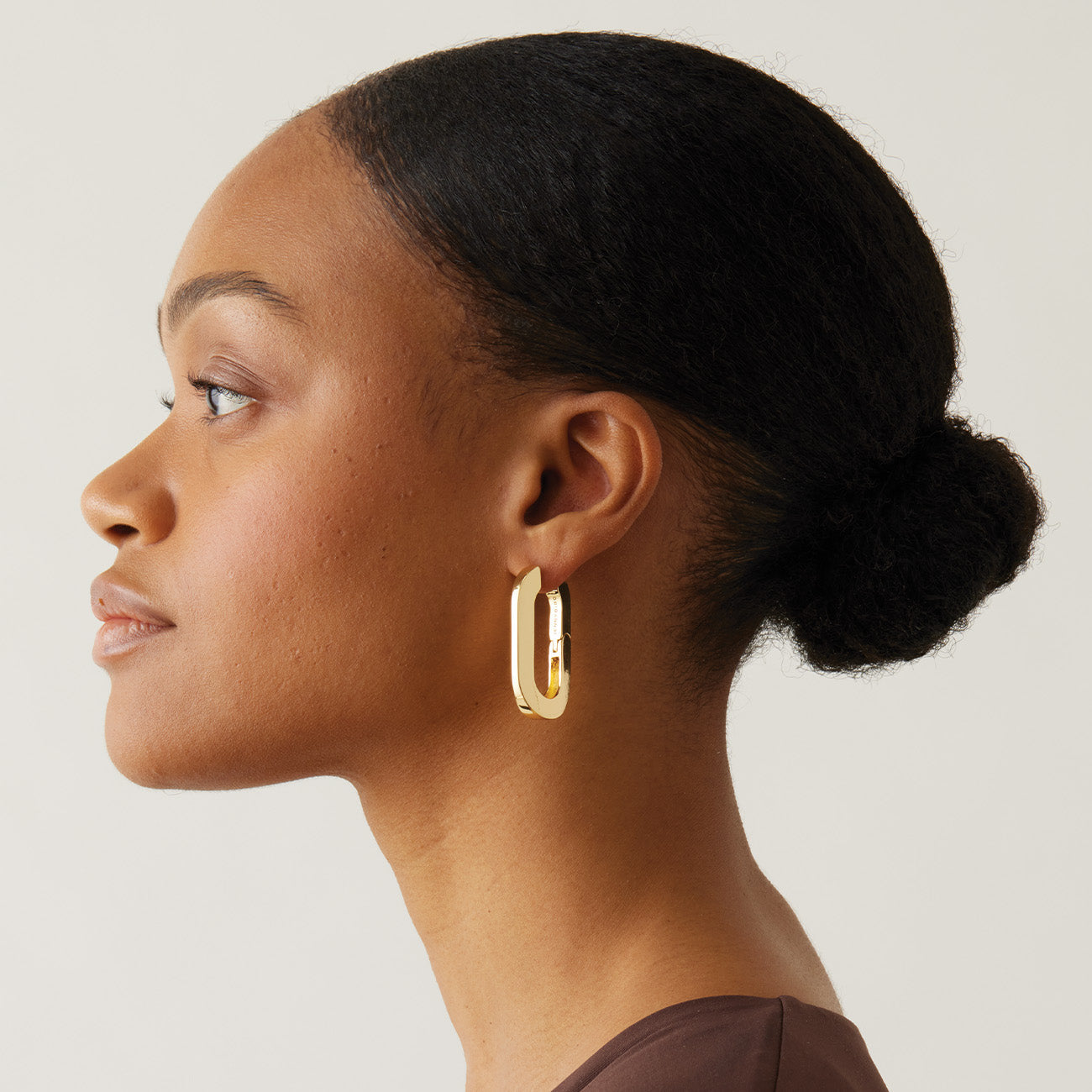 Meet the top-rated super hoop earrings worn by celebrities including Kylie Jenner, Jessica Alba, Ashley Graham, Mindy Kaling and Hilary Duff. The chunky, large U-shaped hoop opens and closes with a hinge. Pull at back hinge to open. Push to lock onto post and listen for a "click" to ensure it's locked properly. Finished