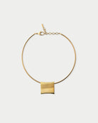 The Carre necklace features a geometric square design with a sleek gold-plated charm suspended from a gold plated wire.