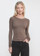Long-sleeve top with a slim fit, flattering stretch, and center back seam. Shorter in length than our classic Silk Rib L/S Crew, it’s made from our soft, breathable signature silk blend.