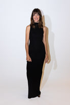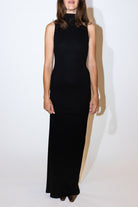 A fluid maxi dress made from our signature silk rib, designed with a high neckline and relaxed fit throughout the body.