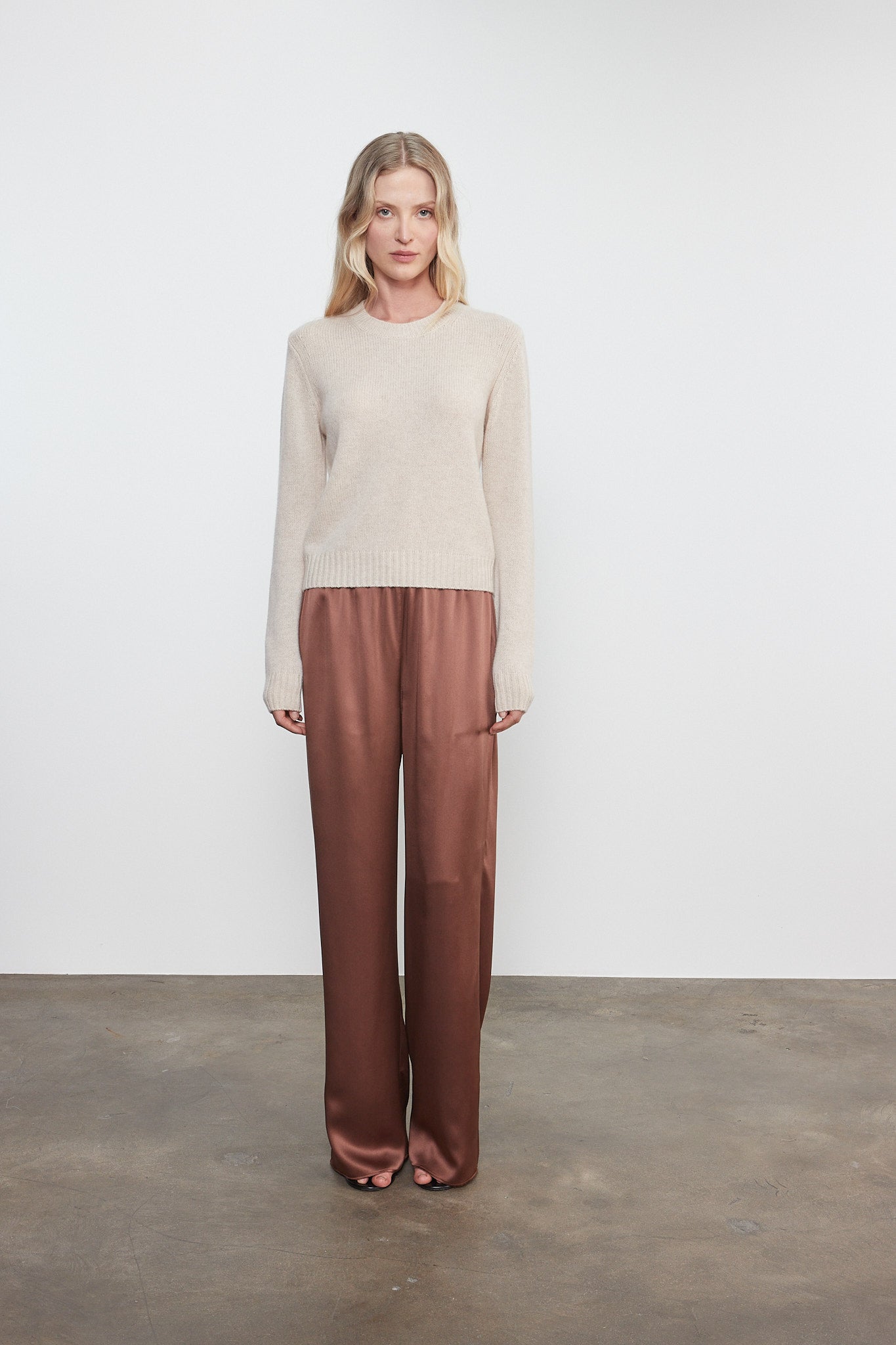 Cut from 100% silk, the Silk Satin Pantlet features a mid-rise, elastic waistband, and relaxed fit. Designed to hit just above the ankle.