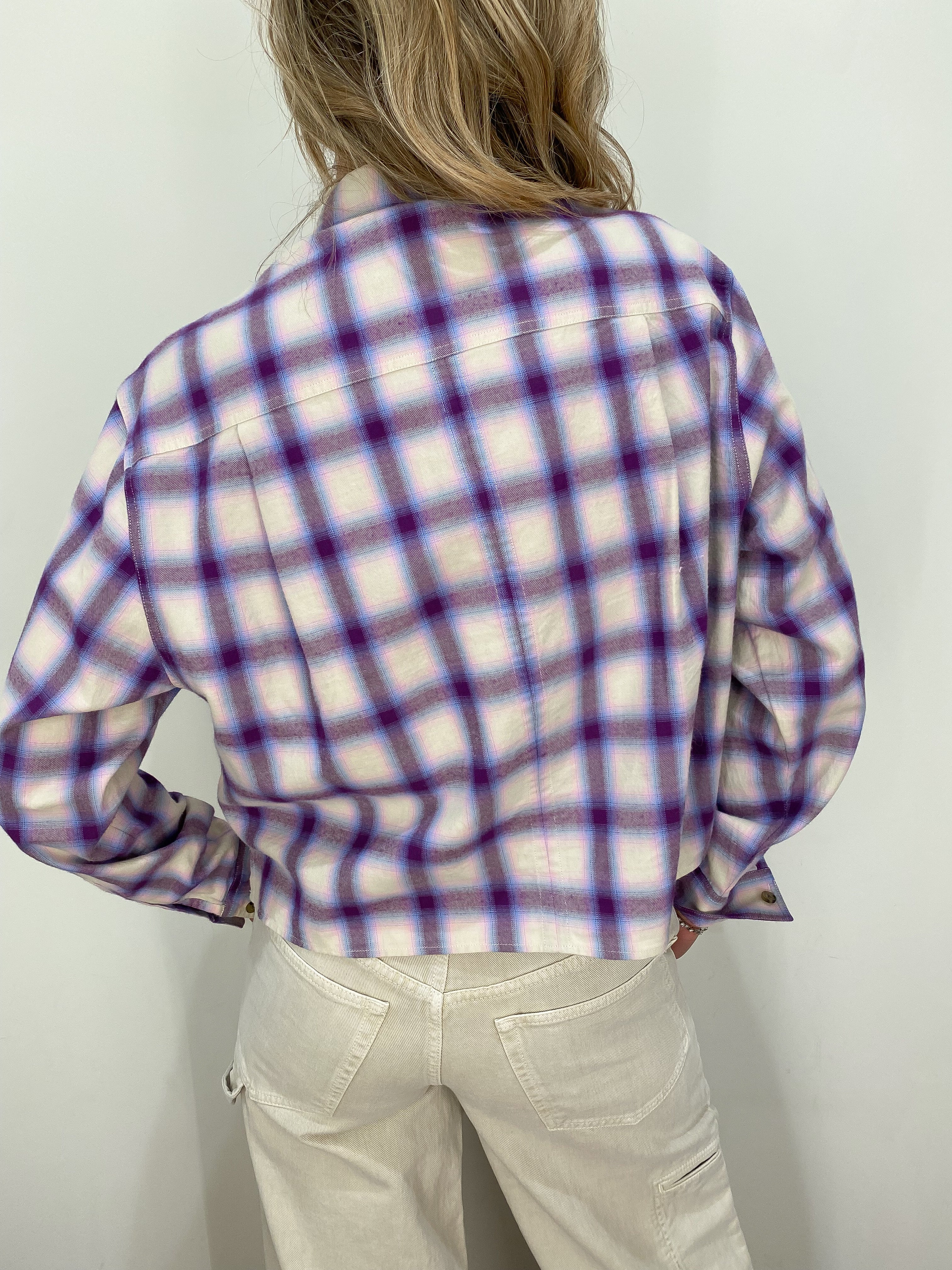 - Short checkered cotton shirt