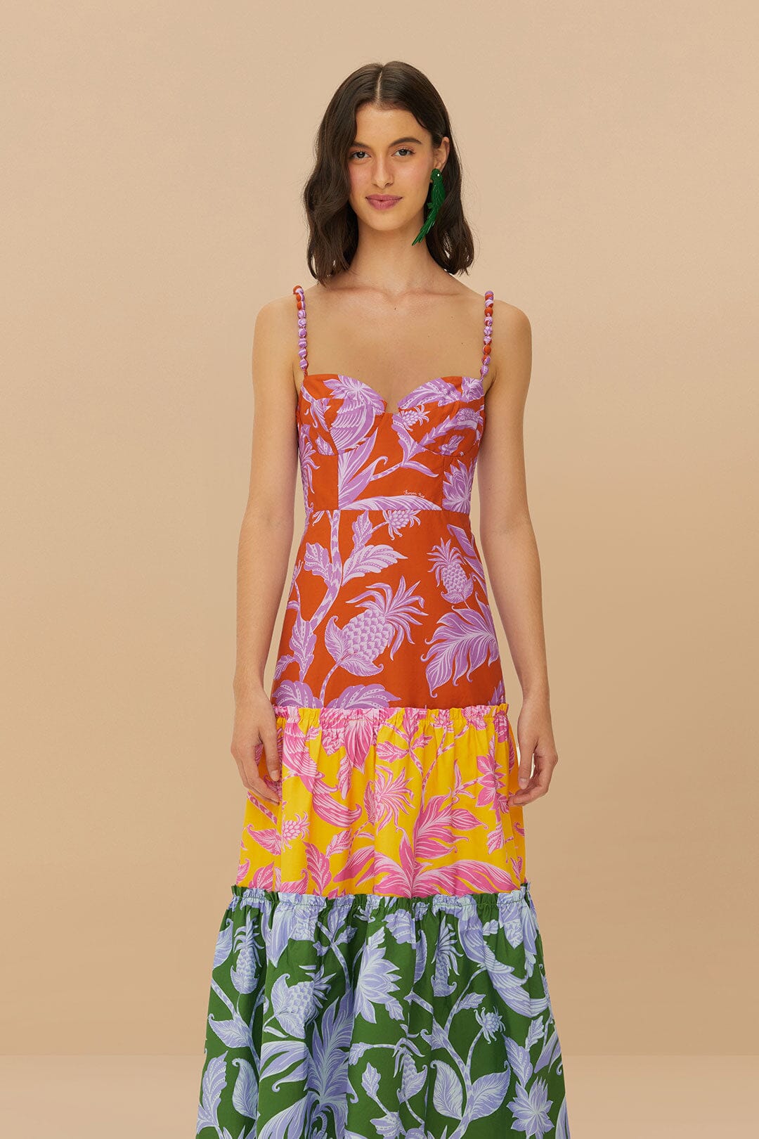 TROPICAL SWING MIX MIDI DRESS