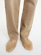 The Merina flats add texture to minimalist looks. Crafted from supple calf leather with a furry surface, they reveal a pointy silhouette. Wear them with a maxi skirt to a gallery.