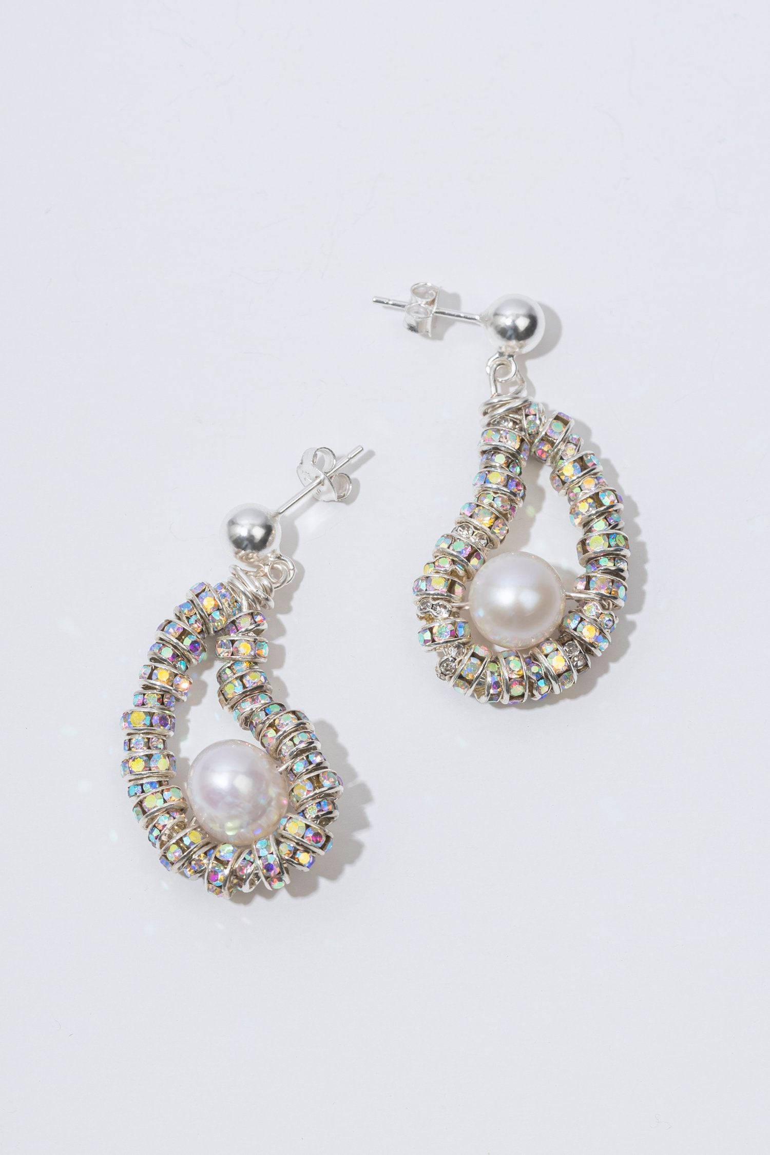 Made with 925 silver plated rondelle beads, Organic Freshwater Pearls and 925 silver sterling ear post.