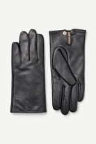 Leather gloves with a press button on the cuff. Debossed Samsøe Samsøe branding. Main lining made from a blend with wool. Main material made from 100% sheep leather. This product contains leather sourced from LWG-certified suppliers. LWG promotes responsible environmental practices across the leather supply chain.