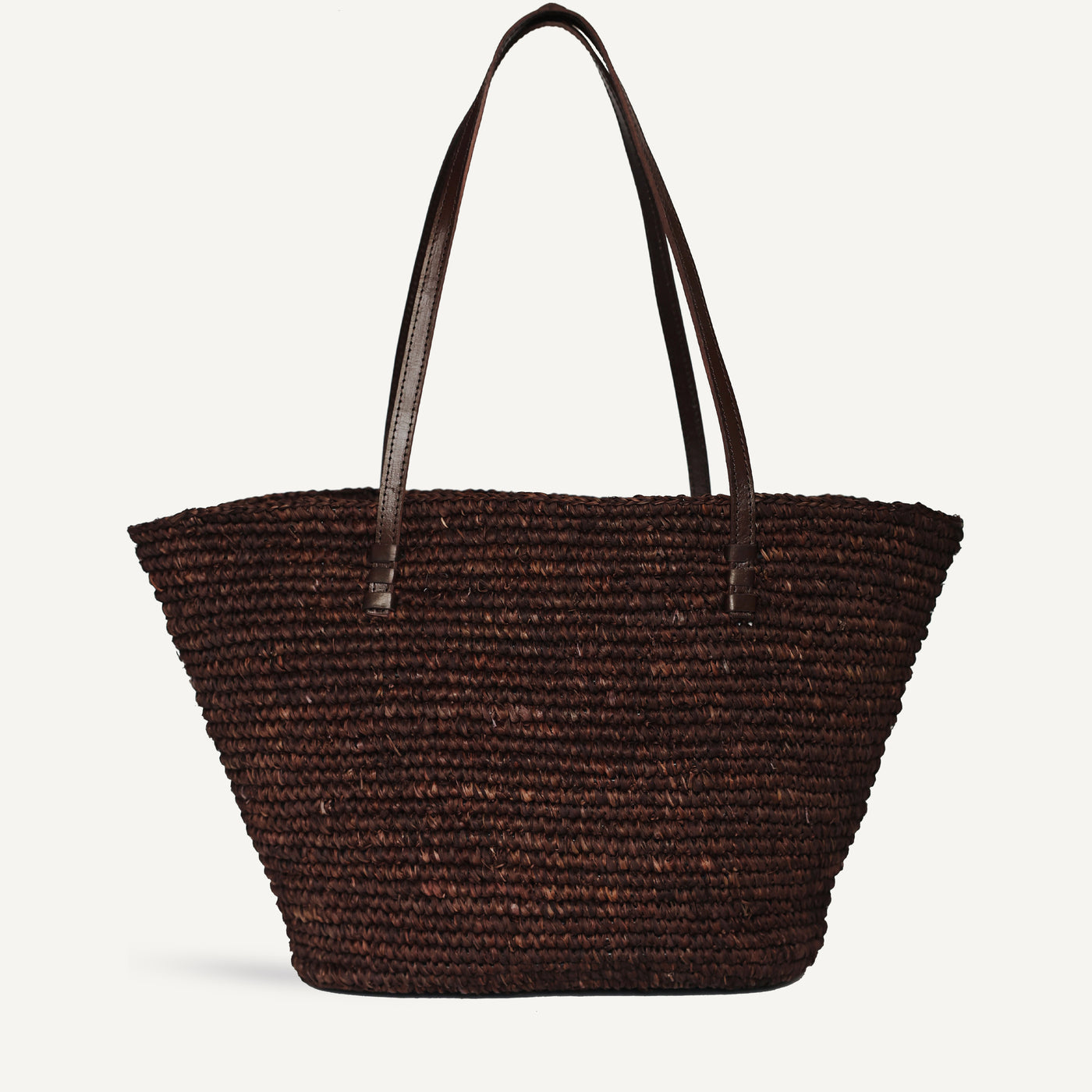 A classic raffia tote with two soft leather shoulder straps. The handwoven base stays upright on the beach (and out of the sand). The roomy interior fits your towel, change of clothes, and water bottle