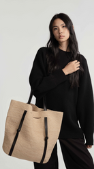 · Natural: Natural Raffia Bag + Black Leather Straps