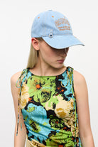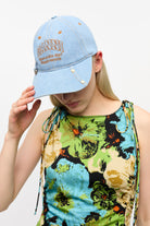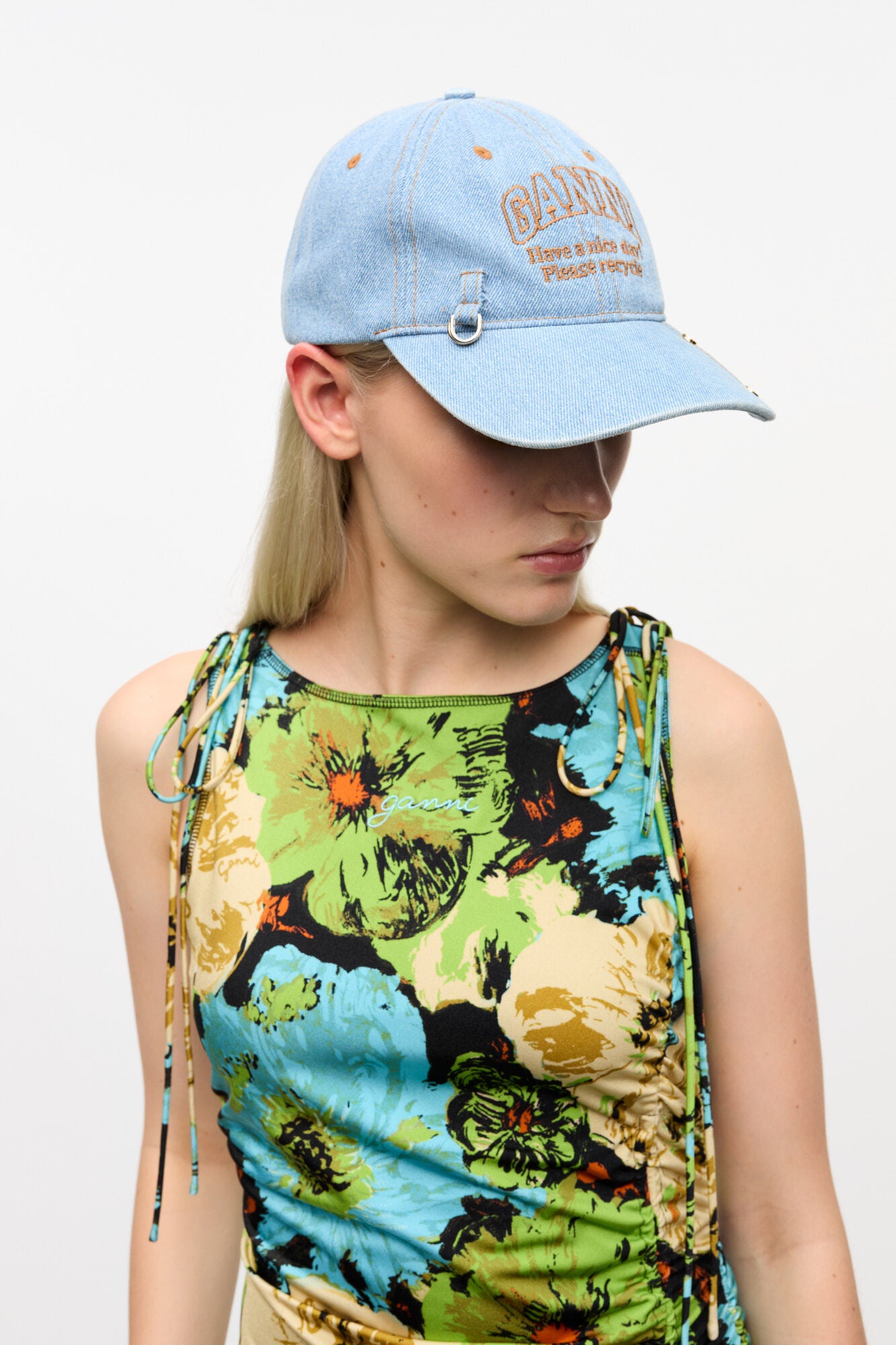 This Denim Cap features a silver-tone eyelet detail and a GANNI logo.