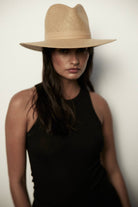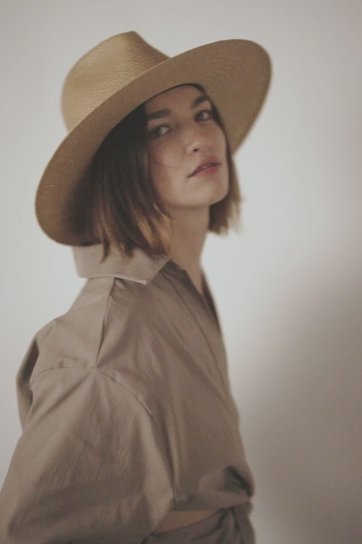 Simone is a classic style fedora made with packable straw and a structured modern shape. Rich black or sand straw with a tonal leather band creates a minimal and timeless look. This hat was made to accompany you to the beach, under the sun, to dinner, and anywhere you travel in between.