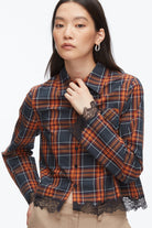 A study in contrasts, this cropped shirt pairs rugged plaid with unexpected femininity. Cut in Japanese woven cotton poplin, it features a bias-cut pocket and delicate floral lace trim at the hem and cuffs. The result is crisp, clean tailoring softened with subtle sensuality—an effortless balance of tough and tender that feels just right for Fall. Style it with wide-leg cargos or denim for a grounded yet elevated look.
