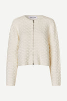 Textured cardigan with a regular fit. Two-way zipper closure on the front. Clean edges. Collar. Main material made from a blend with cotton.