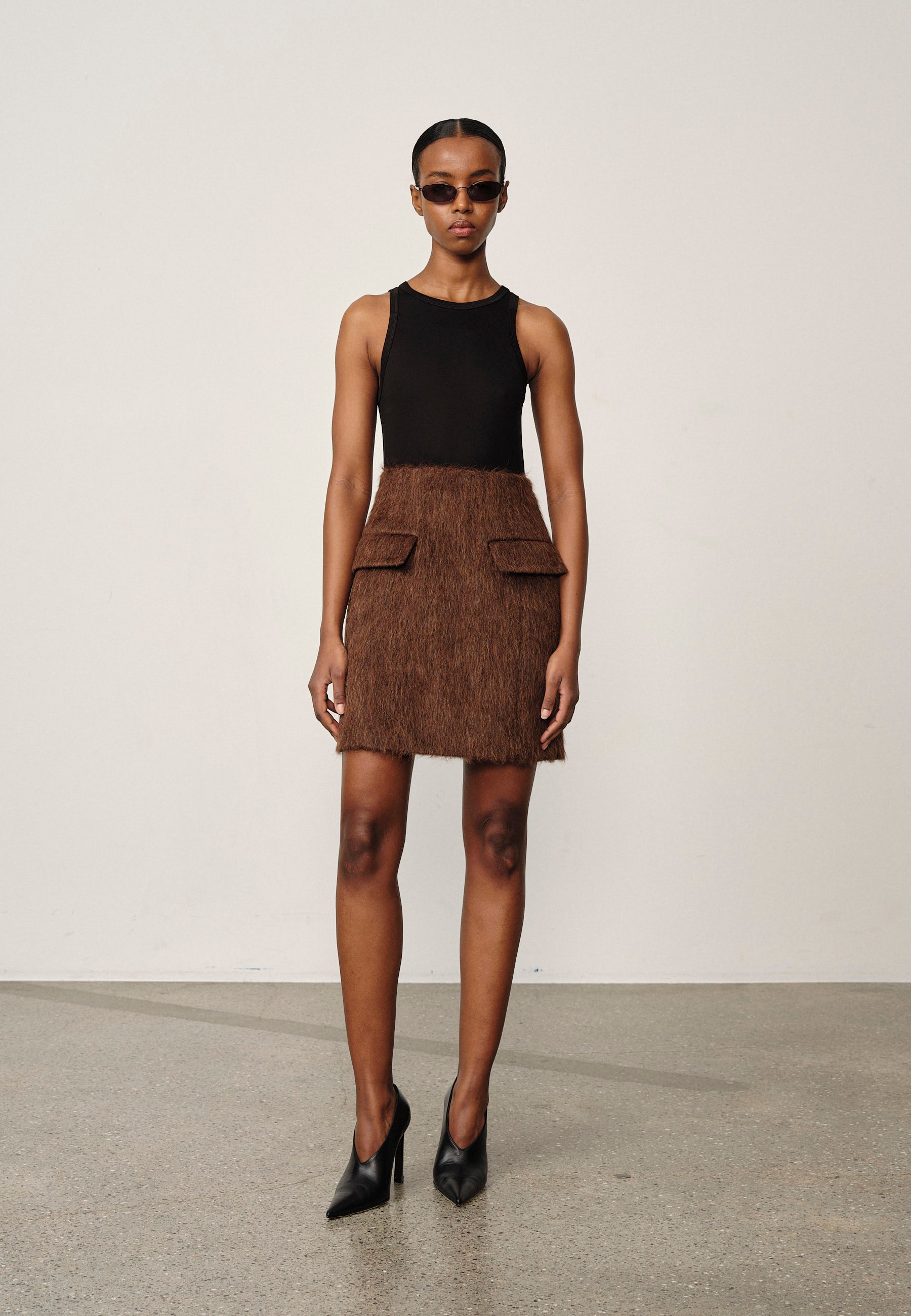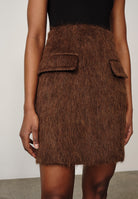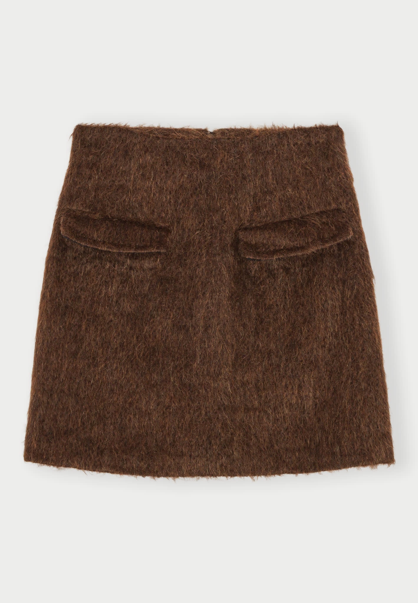 Introducing the Benjamin Skirt: A skirt with an A-line silhouette, featuring side panels and two front flap pockets.