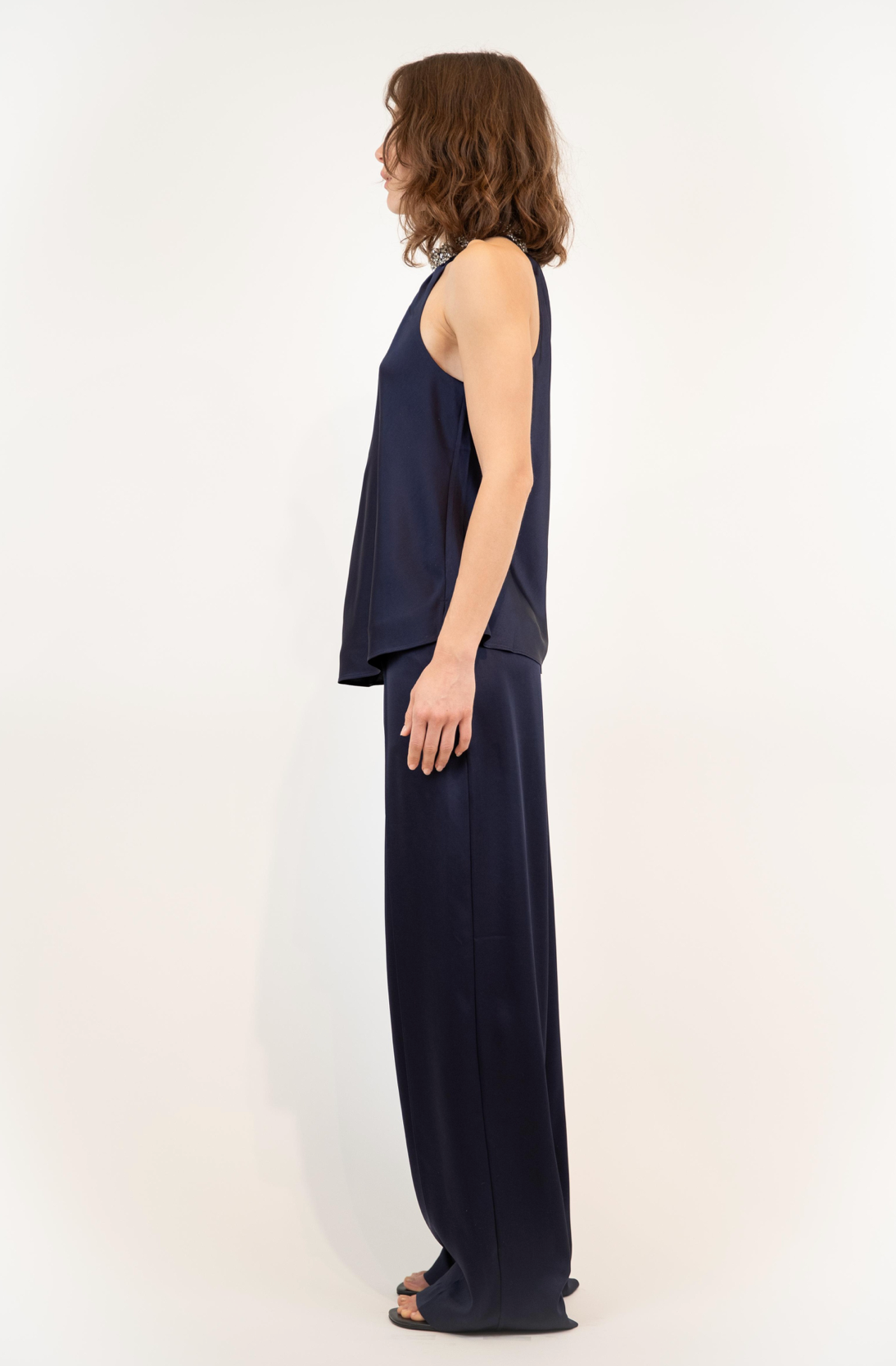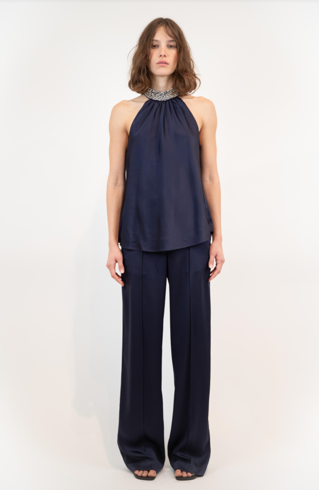 This halter top with a jeweled collar will elevate any outfit. Perfect for a night out or a special event, it adds a touch of glamour to your look while providing comfortable support. Stay stylish and confident with the Navi Top.