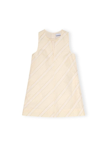 Effortlessly chic and versatile, our Stripe Taffeta Mini Dress features a keyhole neckline and flattering diagonal stripes. Complete with convenient side seam pockets, this dress is perfect for any occasion. Elevate your wardrobe with this must-have piece.