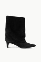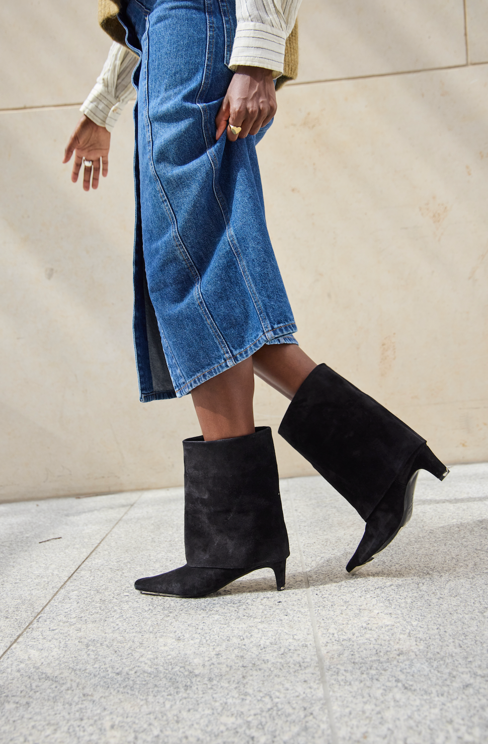 - Mid-Calf Leather Boot with Foldover Cuff Detail
