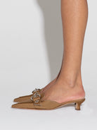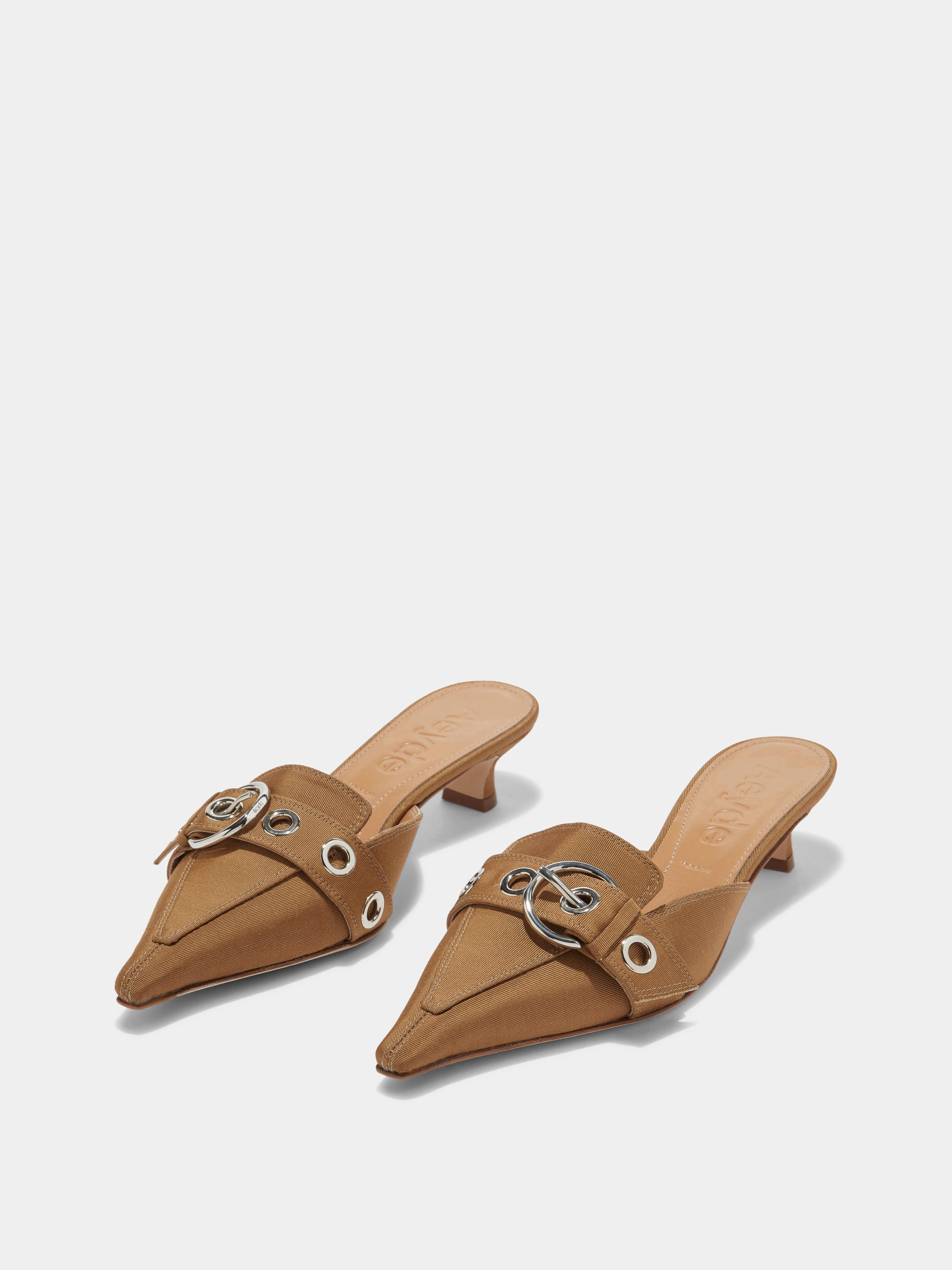 aeyde's 'Danielle' mules have notched vamps adorned with silver-tone eyelets and buckles. They've been crafted in Italy from grosgrain and rest on comfortable 25mm kitten heels.