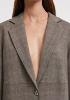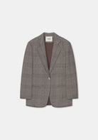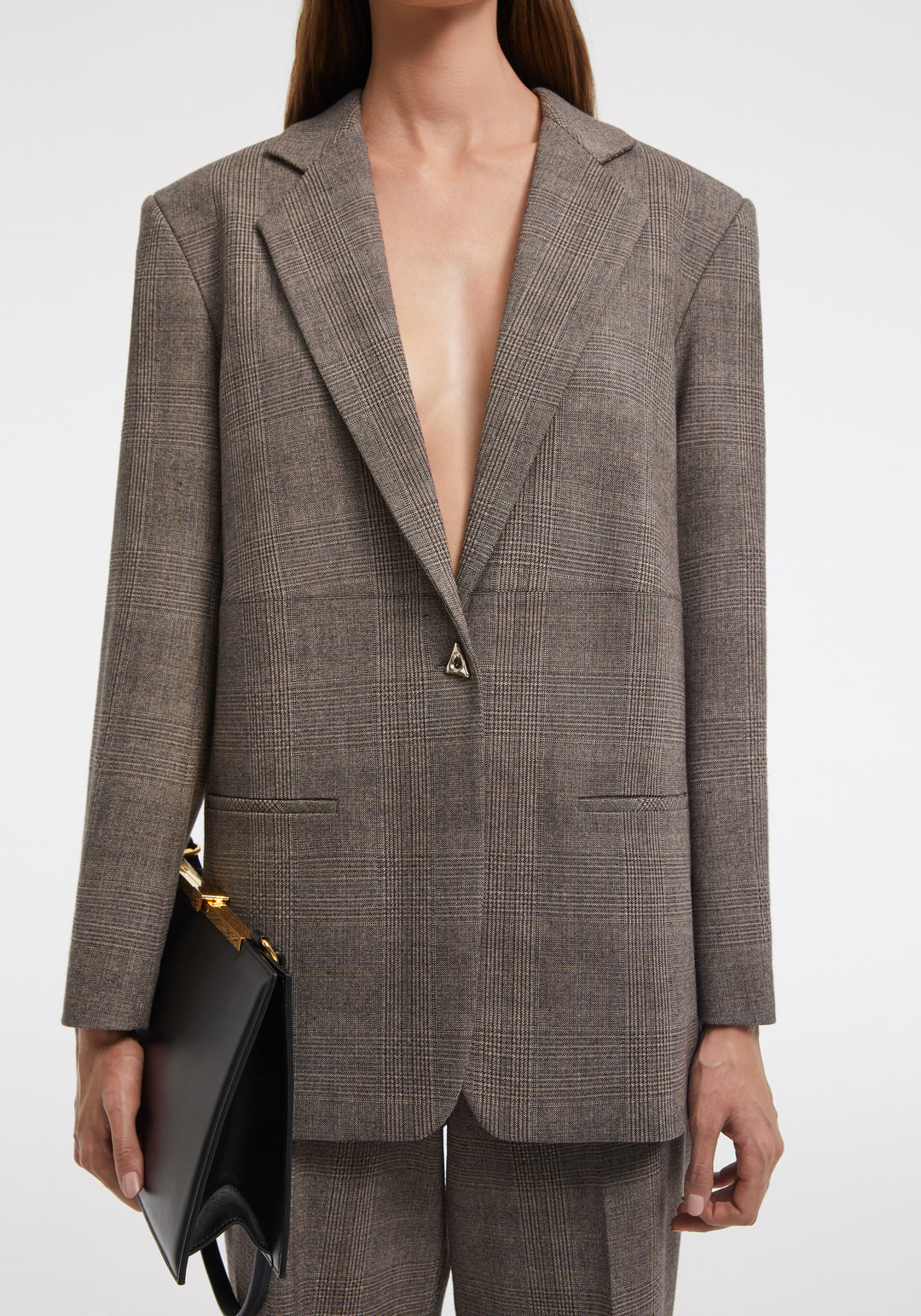 The signature MERCEDES single-breasted blazer is made of a soft wool blend. Tailored in a refined checkered print, it features sharp peak lapels, a single A-button fastening, and softly structured shoulders. A high slit at the back enhances movement, bringing a modern edge to the timeless silhouette.