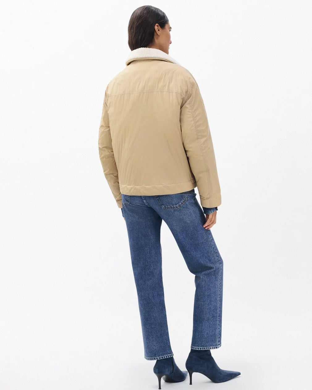 This puffer is cut for a cropped fit from flyweight nylon. A faux fur sherpa collar brings contrast, while a centered front zipper and pockets add ease. Your ultimate effortless throw-on-and-go jacket for colder days. This style runs large. For a closer fit, consider sizing down.