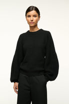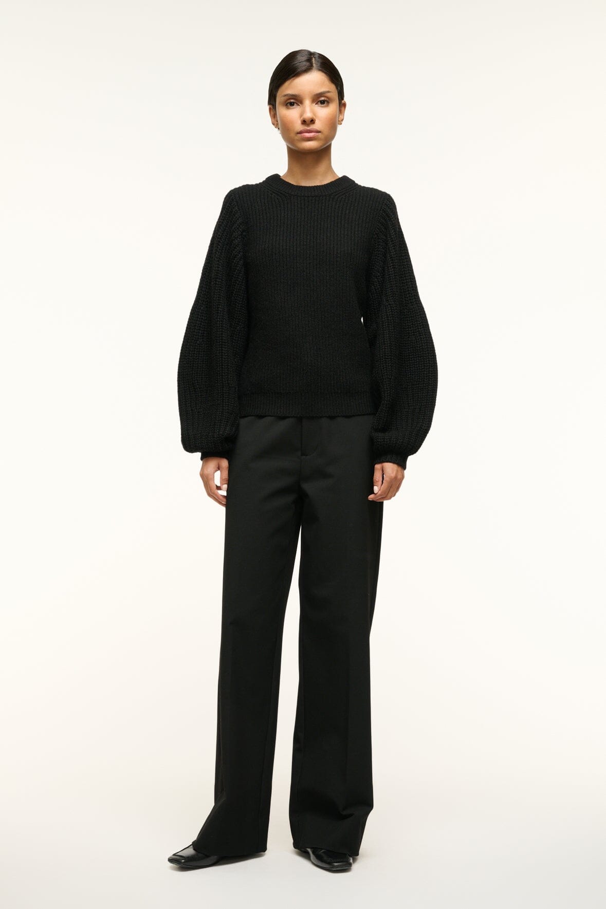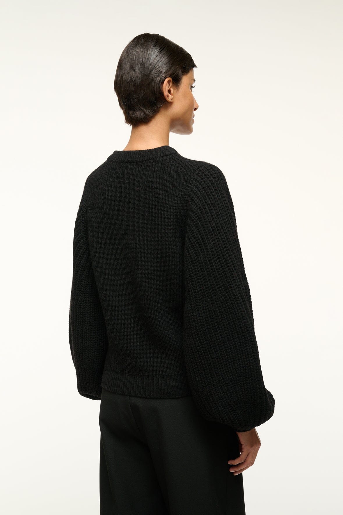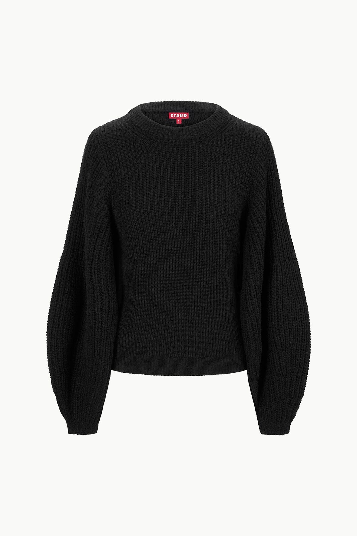 The Aura is crafted in a chunky merino wool and features voluminous balloon sleeves and a crew neckline.