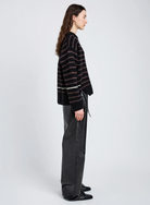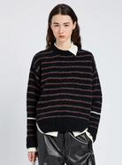 The Leonie Sweater in Stripe Wool is knit in plush wool stripes to a relaxed crew-neck silhouette, finished with thick ribbed trims and side splits at the hem.