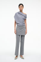 The MABEL SWEATER features an elegant off-the-shoulder design with asymmetrical draping that adds a stylish twist to your look. Perfectly paired with denim and ankle booties, it offers a comfortable yet chic outfit for casual outings or relaxed gatherings. Embrace effortless style while staying cozy in this versatile sweater.