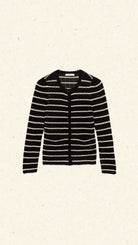 Crafted from a soft, lightweight blend of Pima cotton and silk, the ‘30s-inspired Therese Cardigan features a crew neckline, fitted full-length sleeves with shirring at the shoulders for subtle volume, mother-of-pearl buttons down the front, and an allover pointelle design. The neckline, sleeve cuffs, center front placket, and hemline are adorned with scallop crochet detailing.