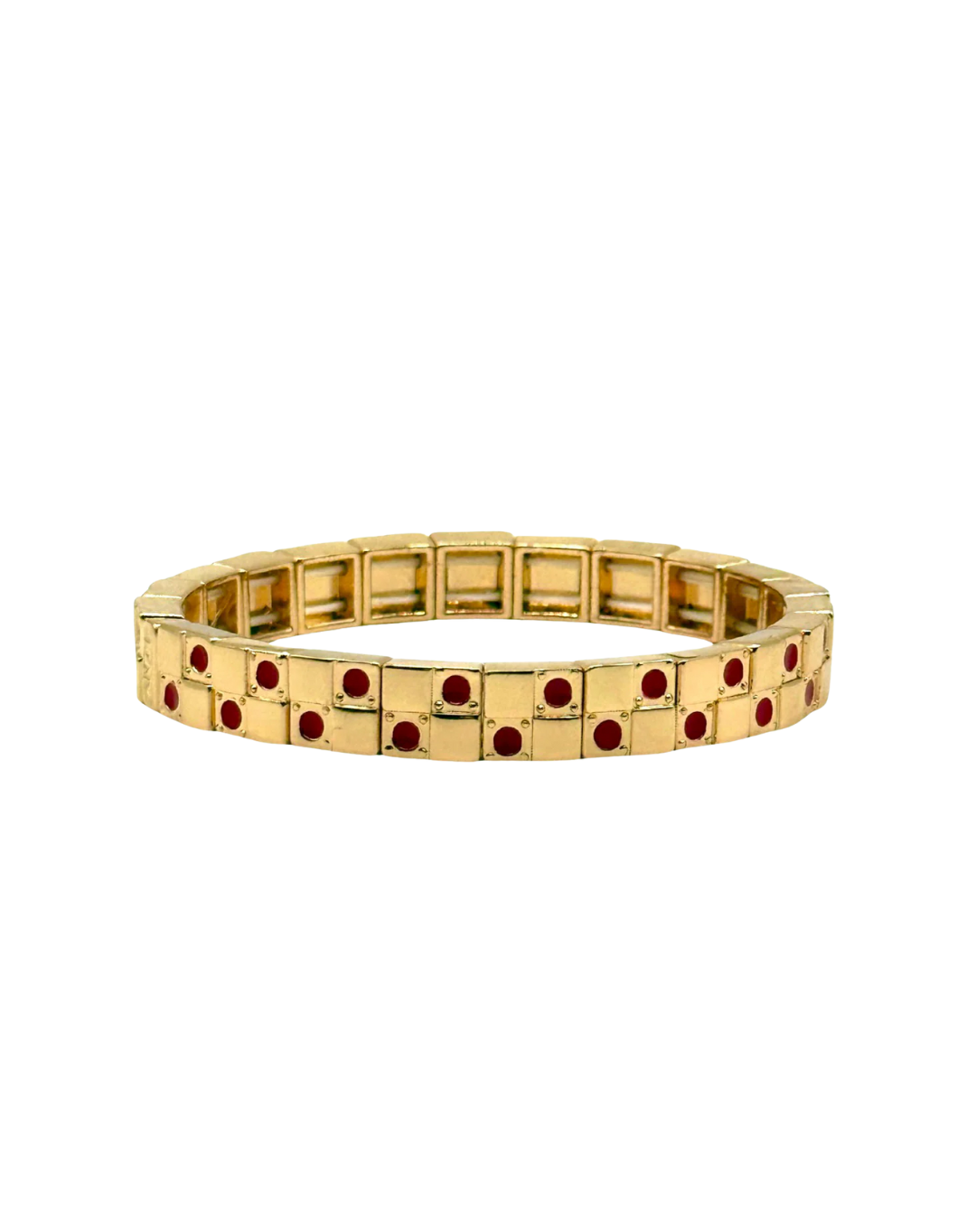 The Dice Bracelet is hand-crafted using the perfect gold square beads with pavé cz gems or enamel dots making each tile look like a dice. This bracelet is 7" in length and is a slip-on-style. All of our single bracelets are designed to be stacked or they can be styled to wear alone.