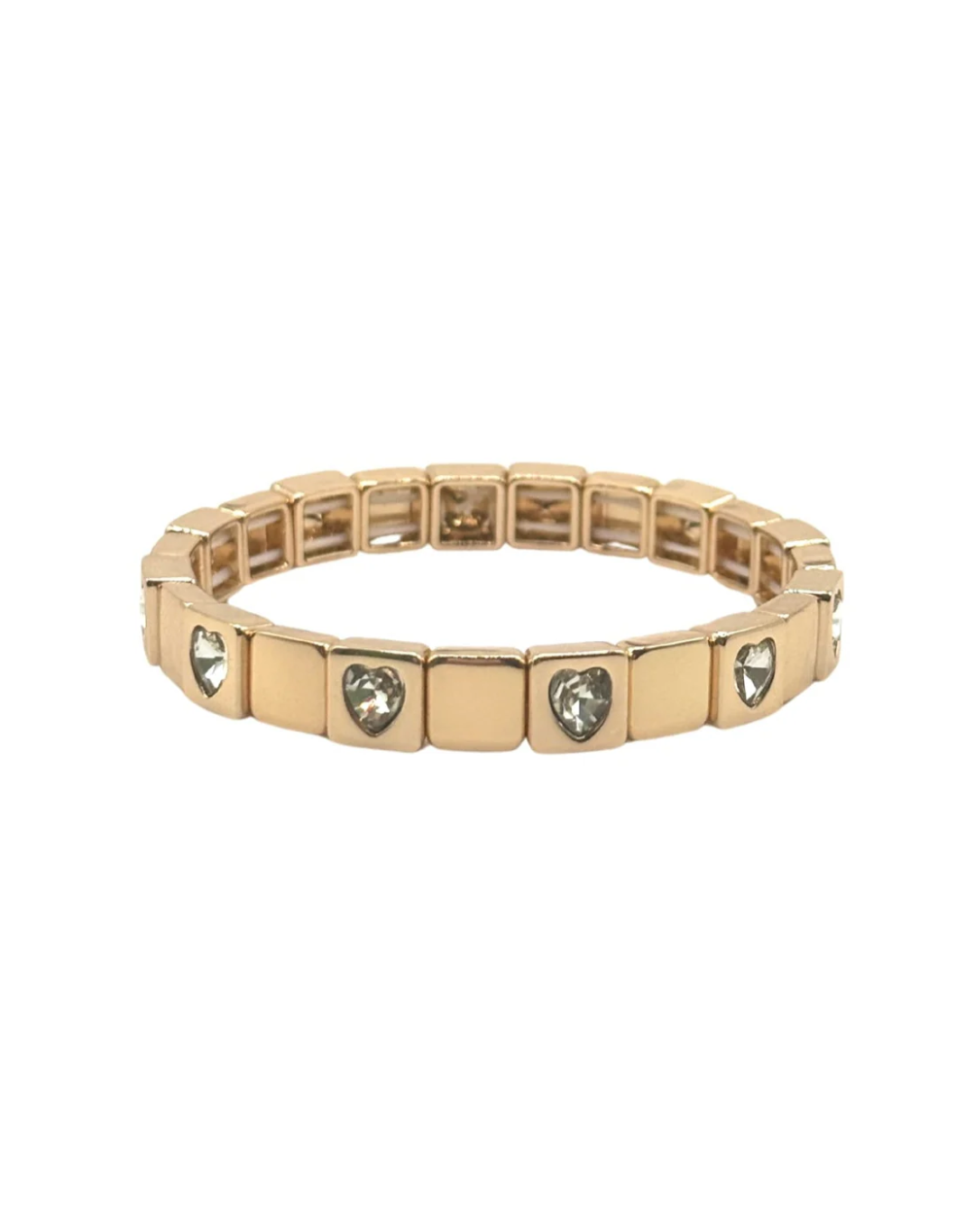 The Endless Heart Gems bracelet consists of heart gems alternating with squared tiles. The perfect statement to take you from day to night! Each bracelet is 7" in length and a slip-on-style. All of our single bracelets are designed to be stacked or they can be styled to wear alone.