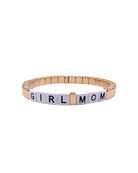 The Girl Mom Gold Line Bracelet features textured gold beads in a thinner, more petite size with the words "GIRL MOM". Perfect gift's for Mother's Day, Girl Moms to be or just because! Each bracelet is 7" in length, 7MM bead diameter and is a slip-on-style. All of our single bracelets are designed to be stacked or they can be styled to wear alone.