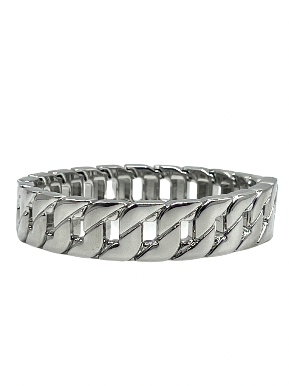 A large cuban chain, but with stretch! This bracelet is hand-crafted using silver colored and gemstone enamel beads. We carefully select each color pallet to strike a style for both everyday and special occasions. This bracelet is 7" in length, 7MM bead diameter and is a slip-on-style. All of our single bracelets are designed to be stacked or they can be styled to wear alone.