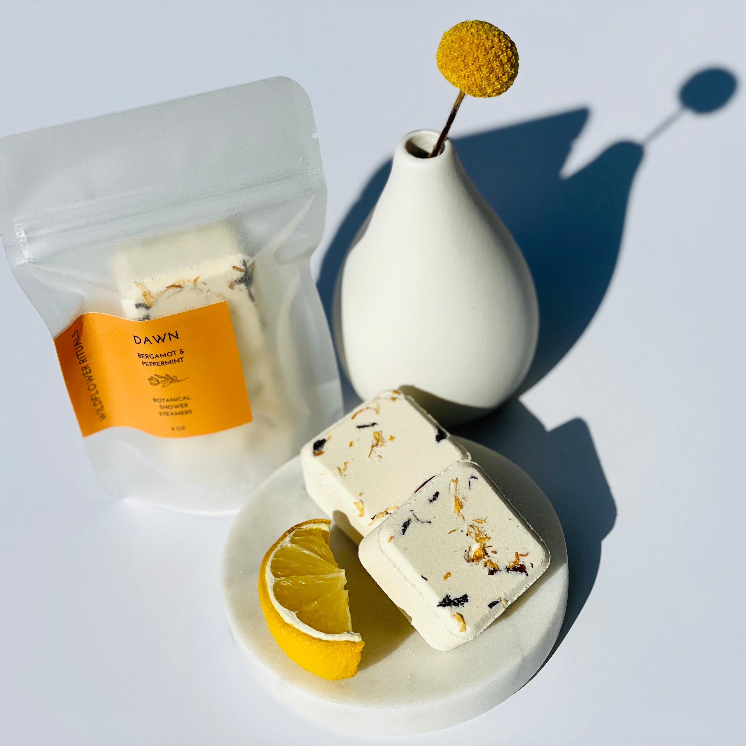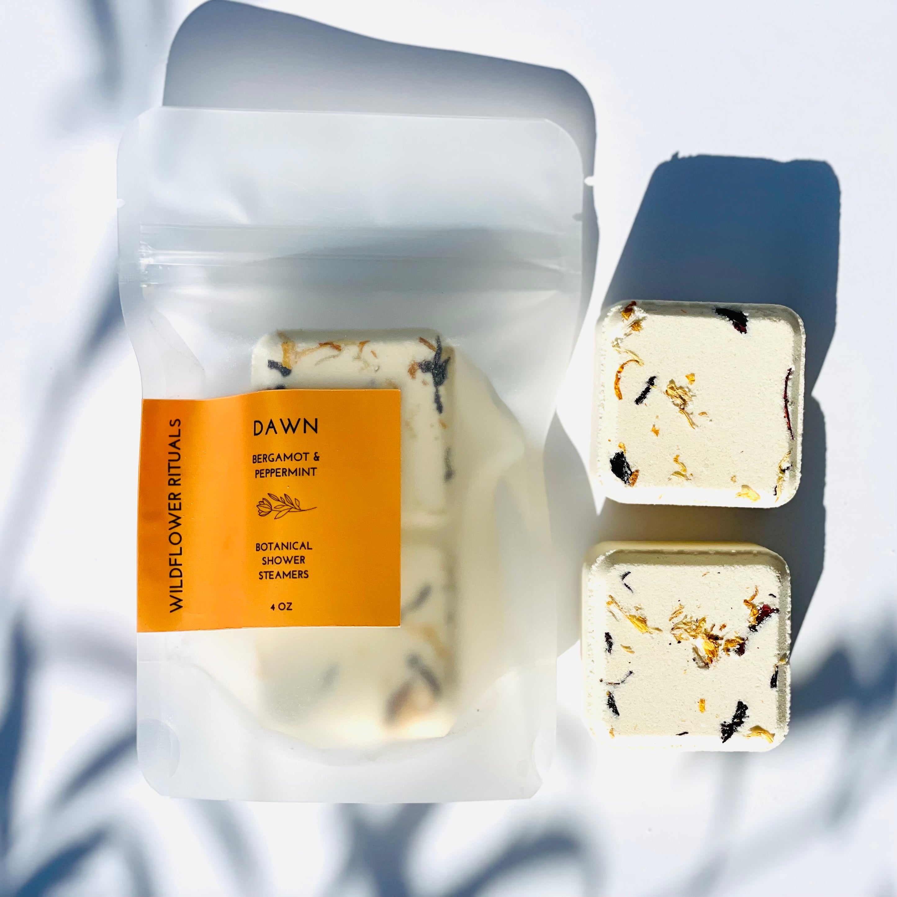 - Botanical Shower Steamer DAWN contains Bergamot & Peppermint