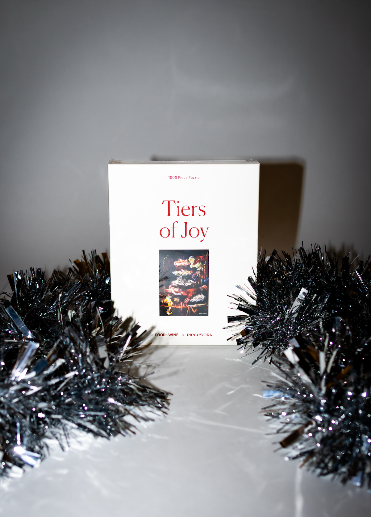 Introducing Tiers of Joy, a collaboration with Food & Wine. This 1000-piece puzzle is a grand shell-ebration: oysters, lobster, and shrimp arranged in a decadent seafood tower, framed by flickering candles and lush florals. Equal parts indulgence and artistry, it’s a feast you’ll savor piece by piece.