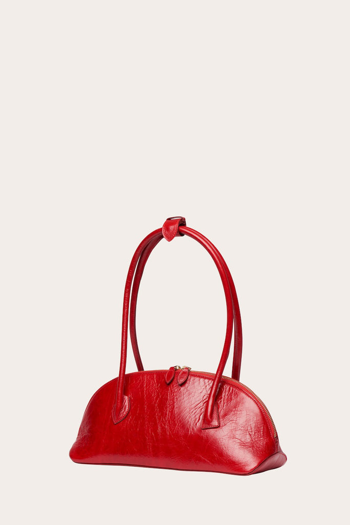 The ‘East/West’ Dome Bag is designed to lend some “zing” to every look. Its elongated silhouette is topped with exaggerated handles, long enough to comfortably wear over the shoulder. Mismatched tabs—an updated take on our signature sprout design— are an eclectic detail that underscores individuality.